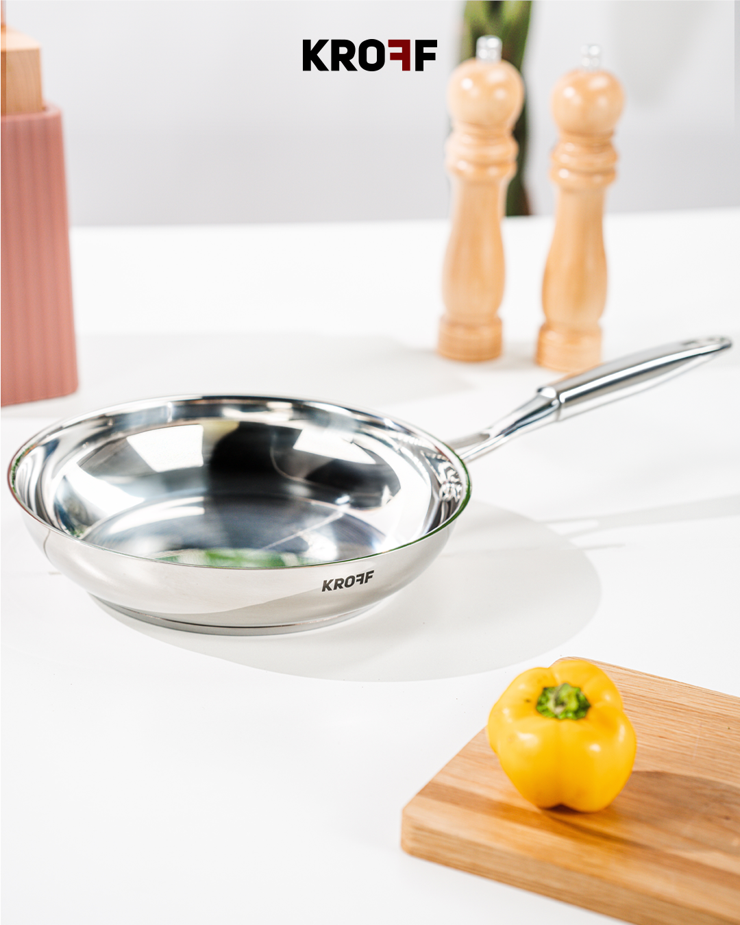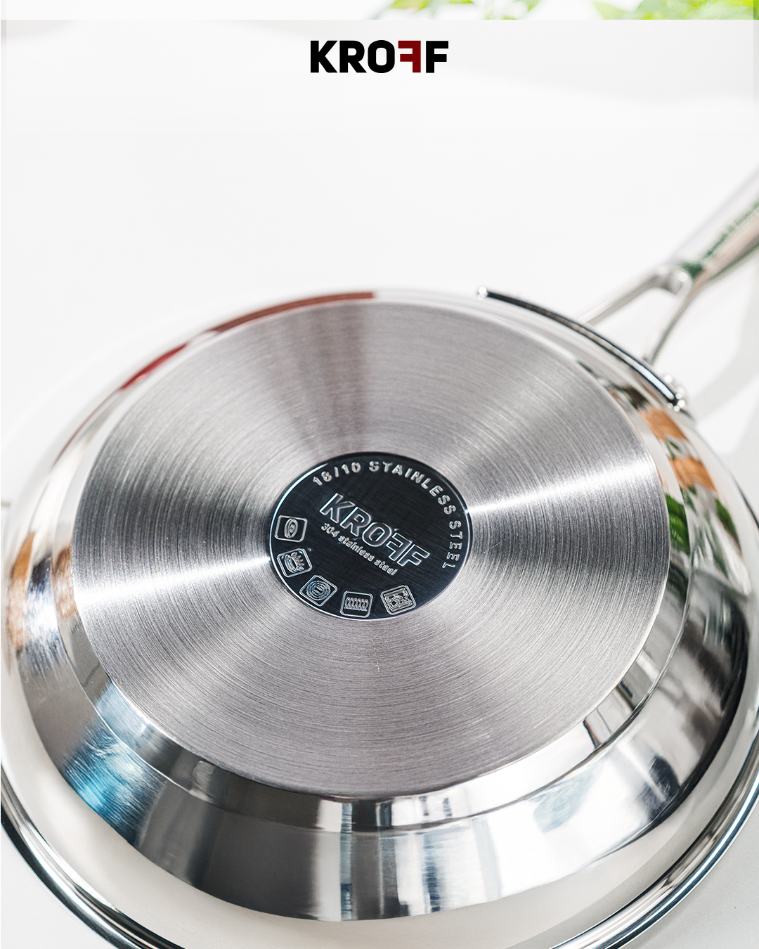 تُصنع مقلاة Kroff من الستانلس ستيل عالي الجودة، مما يضمن لك متانة لا تُضاهى وسهولة في التنظيف. تعتبر هذه الخامات مثالية لتحضير الأطعمة الصحية دون القلق من التفاعل مع المواد الغذائية.